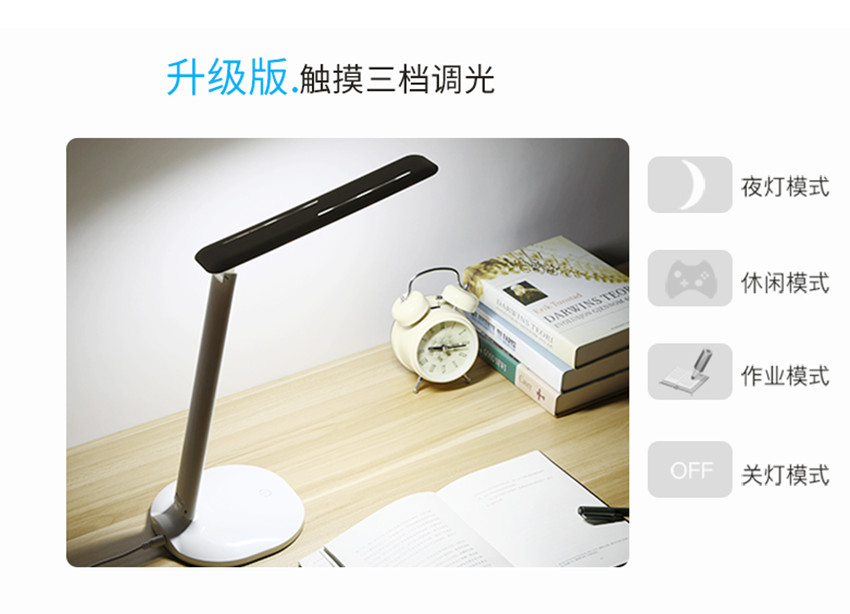 夜燈、休閑、作業三模式可觸摸變換,只能護眼