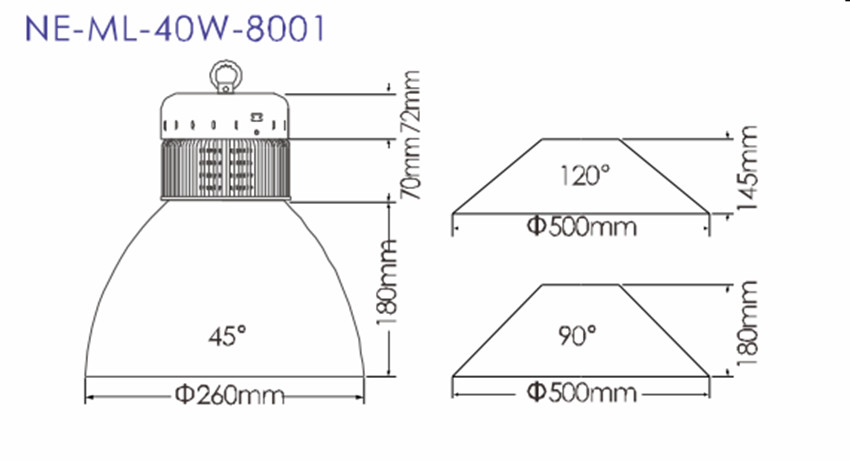 高天井用LED工礦燈,發光角度45°、90°、120°多種角度可選,3年質保,適用于工廠,倉庫,室內體育館等地照明